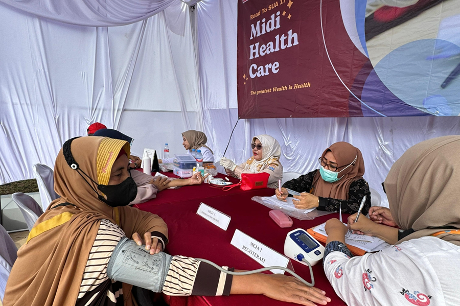 Alfamidi melalui program Corporate Social Responsibility (CSR) menunjukkan kepeduliannya terhadap kesehatan masyarakat dengan menggelar aktivitas cek kesehatan gratis. Acara berlangsung di halaman Alfamidi Super Penggilingan 2, Cakung, Jakarta Timur, Sabtu (27/07/2024).