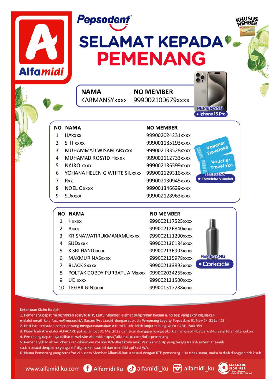 - Hati-hati terhadap penipuan yang mengatasnamakan Alfamidi. Info lebih lanjut hubungi ALFA CARE 1500