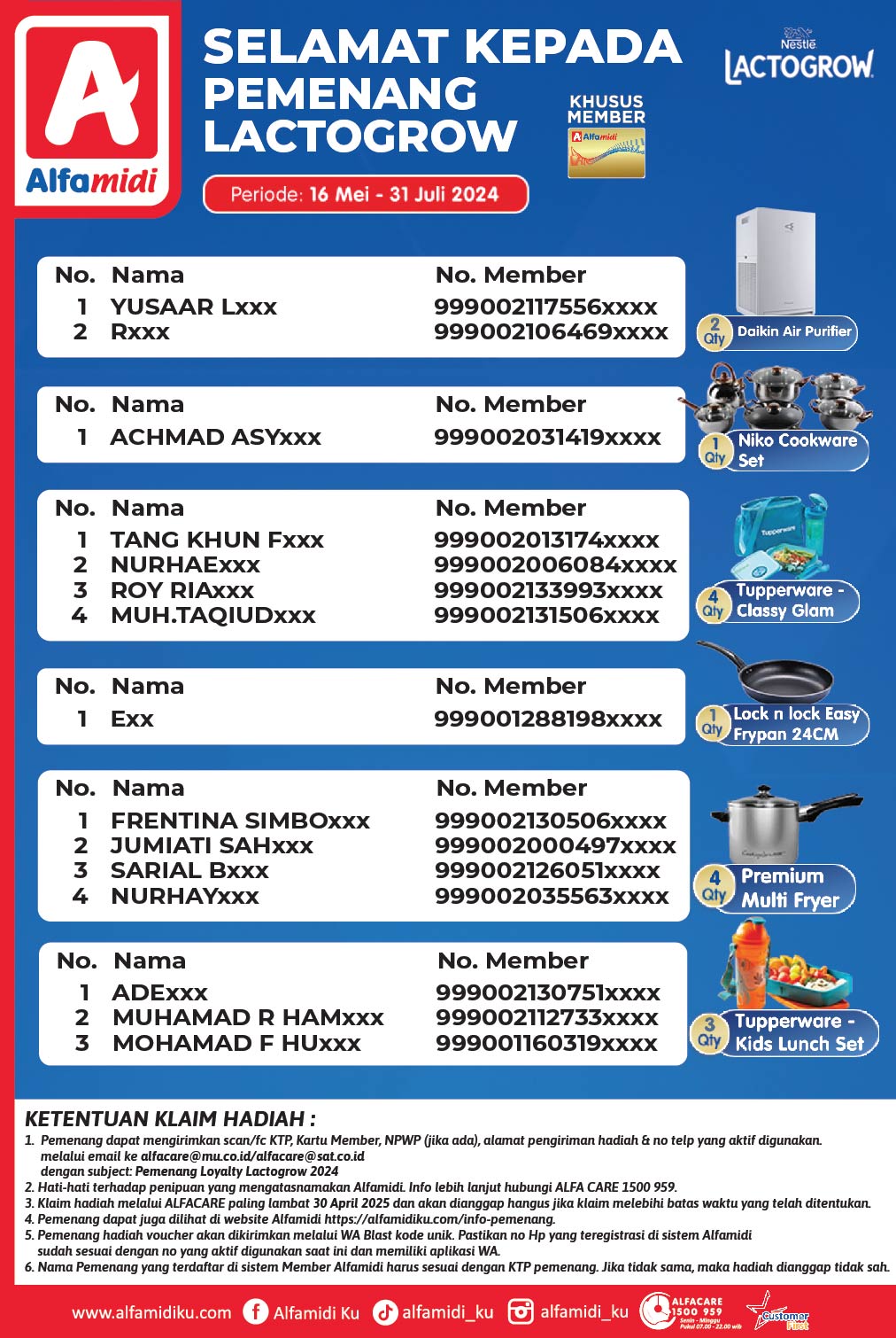 Pemenang Loyalty Member Alfamidi X Lactagrow 2024