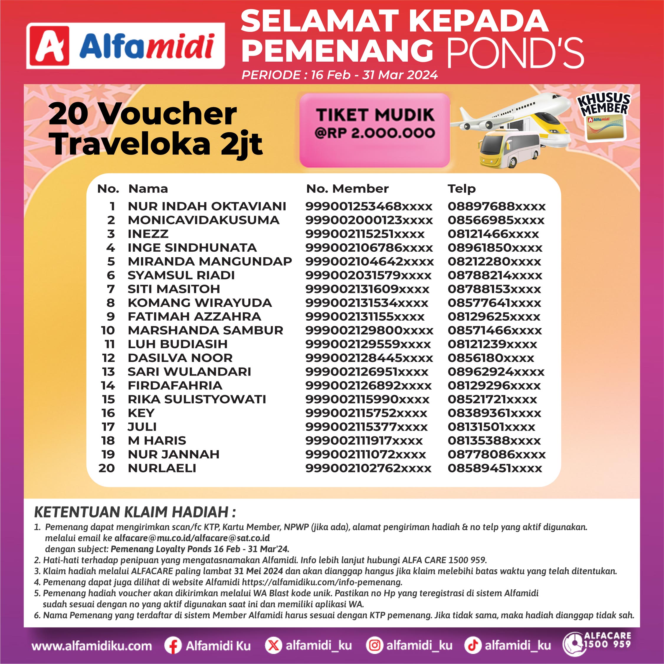 Pemenang Loyalty Member Alfamidi X Ponds 2024