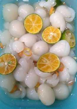 Lalu siramkan di atas rambutan, tambahkan bahan-bahan lainnya, aduk rata, dinginkan dan